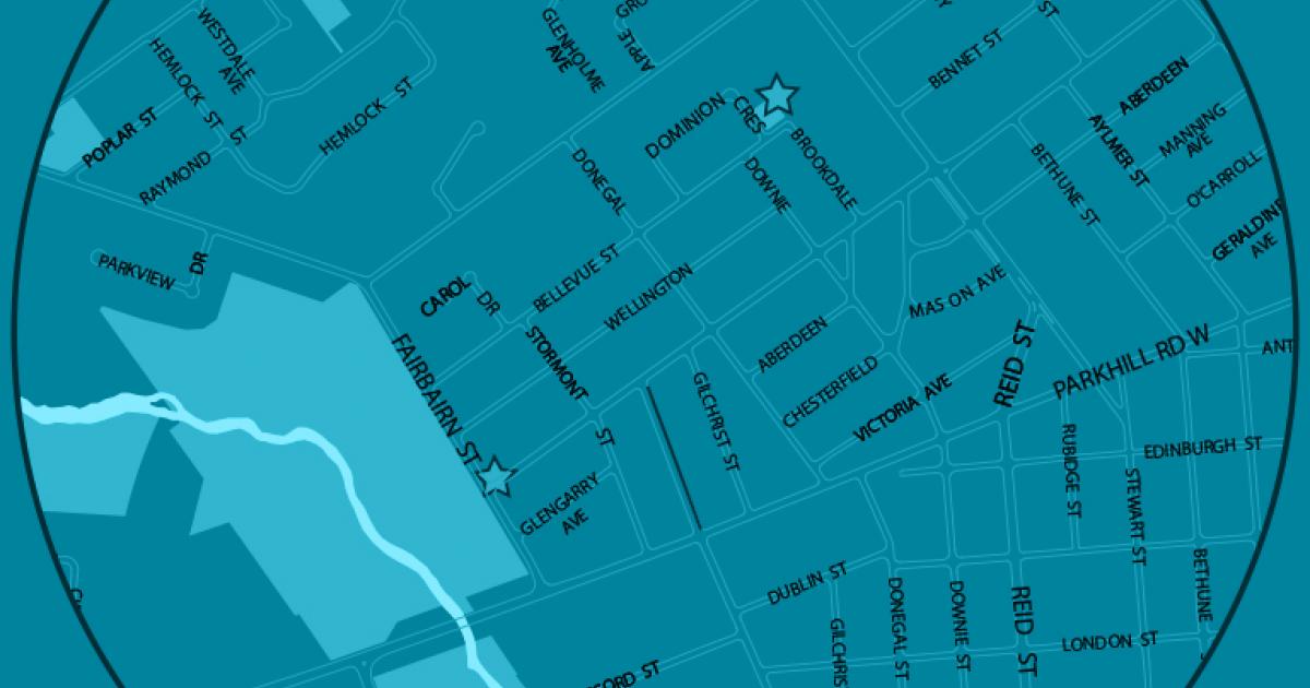 Pick a central spot within your neighbourhood and walk five minutes at your standard pace, following a common route. Mark your path on a map and note where you end up at five minutes. On your way back to the starting point, write down all the possible destinations you passed (i.e., businesses, parks, benches, schools etc). Once you return to the original spot, start over until you have exhausted all of the paths. Or, work with a team of volunteers and have peole divide up and take different paths. You can expand the activity for 10–15-minute-walk radii, if desired. Just continue walking along the route and mark where you end up within each of these travel times.